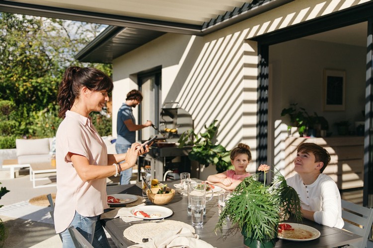 Okrem relaxačných chvíľ na terase je pre vás hravé aj ovládanie pergoly s motorom. Výklopné lamely pergoly priamo na fasáde domu vám pomôžu v zimných mesiacoch vyhriať interiér a ušetriť náklady na vykurovanie, zatiaľ čo v letných mesiacoch zabránia prehrievaniu a poskytnú vám príjemný chládok. Pergolu môžete jednoducho ovládať pomocou nástenných a diaľkových ovládačov. Alebo ju dokonca zapojte do chytrej domácnosti a nechajte ju, aby sa ovládala sama.