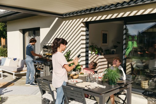 Užite si komfort na svojej terase pod chytrou pergolou. Riadiaca jednotka Pergola io control unit je určená špeciálne pre bioklimatické pergoly. Využite svoju pergolu na plno a prepojte ju so slnečným, veterným alebo dažďovým senzorom. Kompatibilný s Tahoma a Connexoon (Terrace)